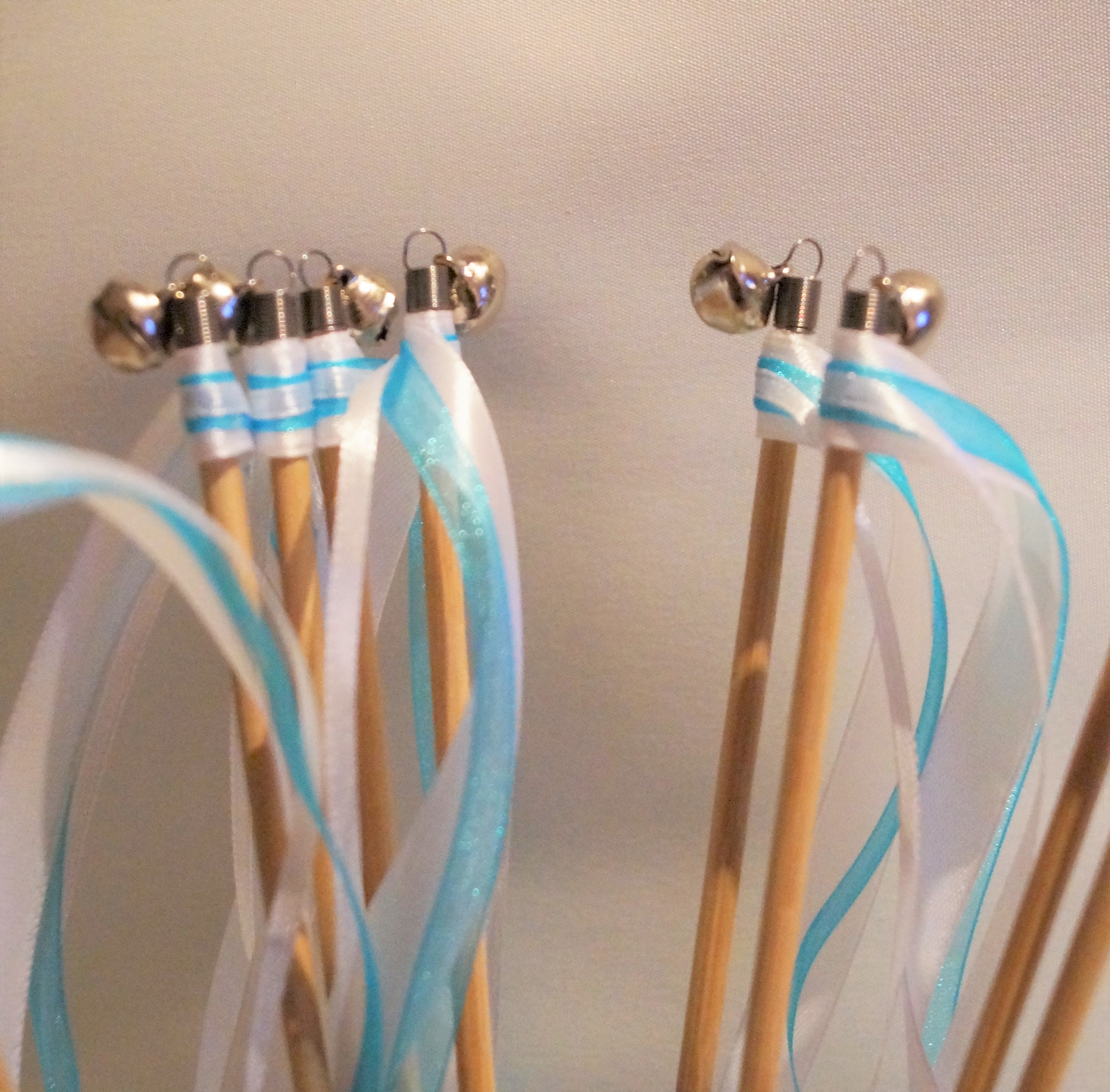 Preview: 10 Wedding Wands mit Schellen Hochzeit Gäste Weddingwands türkis
