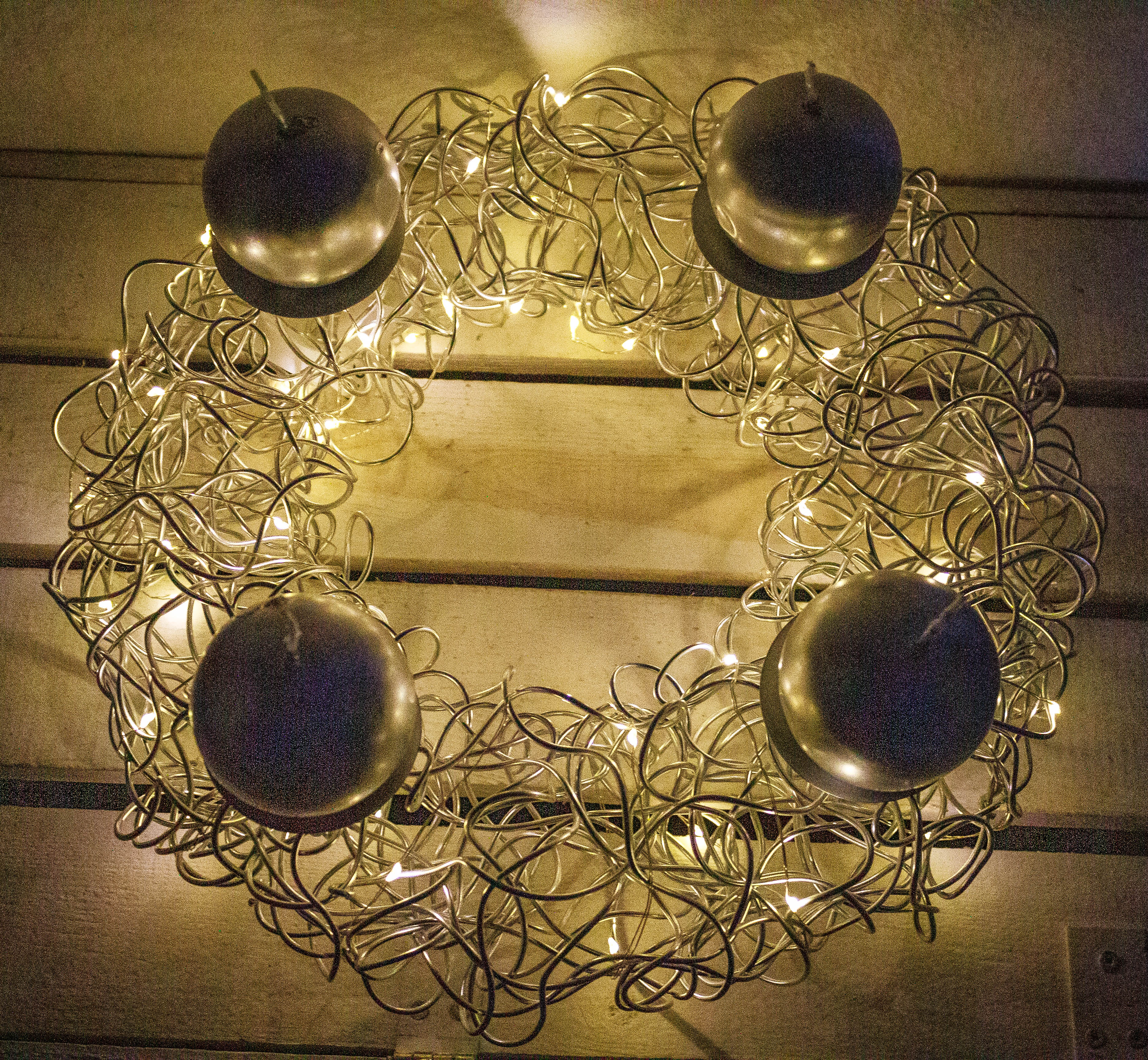 Dieser Adventskranz, liebevoll gewickelt aus silbernem Draht, mit den vier silbernen Kugelkerzen und der dezenten Lichterkette, ist ein einmaliges außergewöhnliches Unikat. Selbst wenn Ihr ansonsten keinerlei Weihnachtsdeko in Eurem Raum habt, mit diesem Kranz verleiht Ihr Eurem Raum direkt eine ganz besondere weihnachtliche Stimmung.