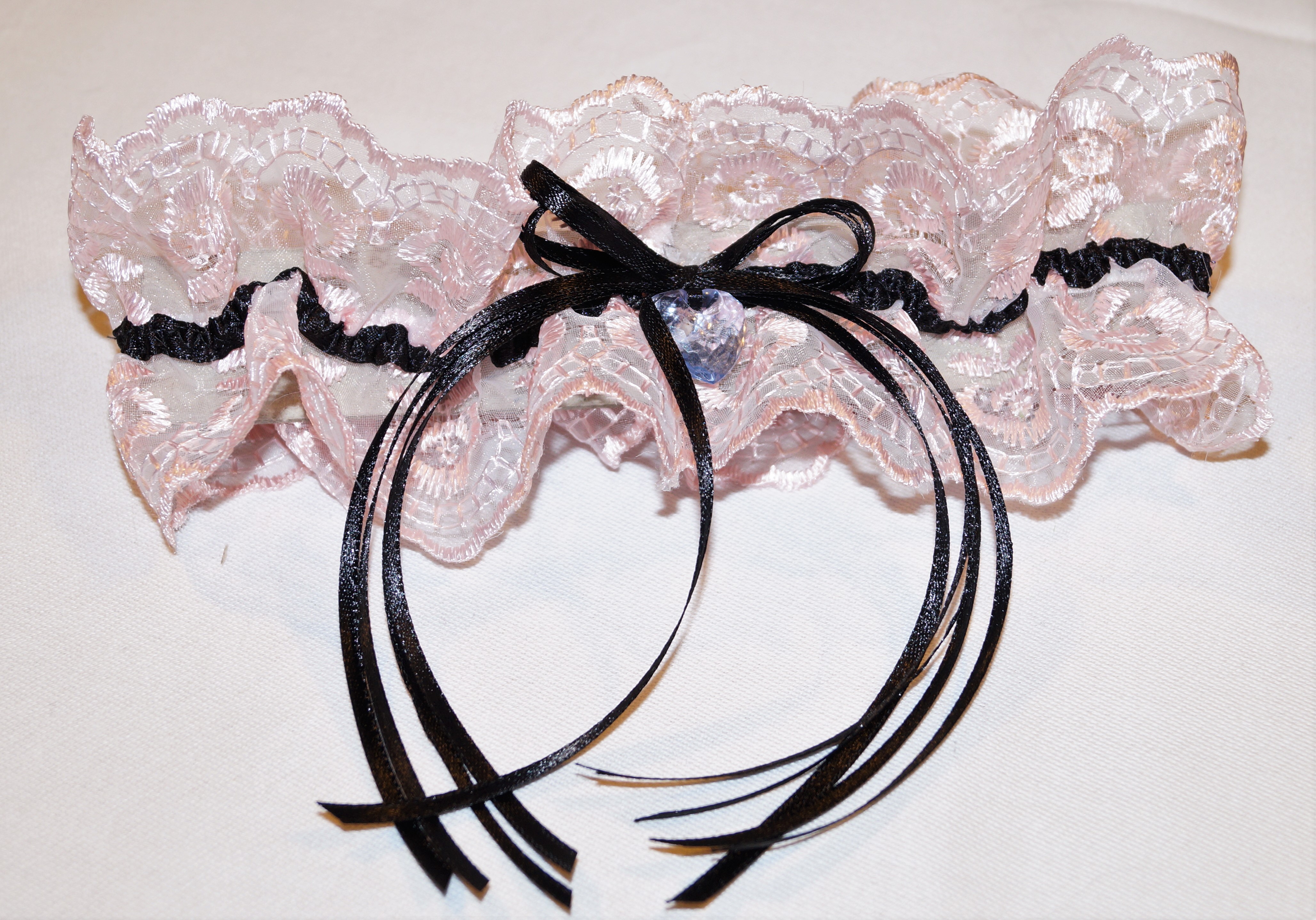 das Strumpfband ist aus 7,5 cm breiter rosa farbener Spitze