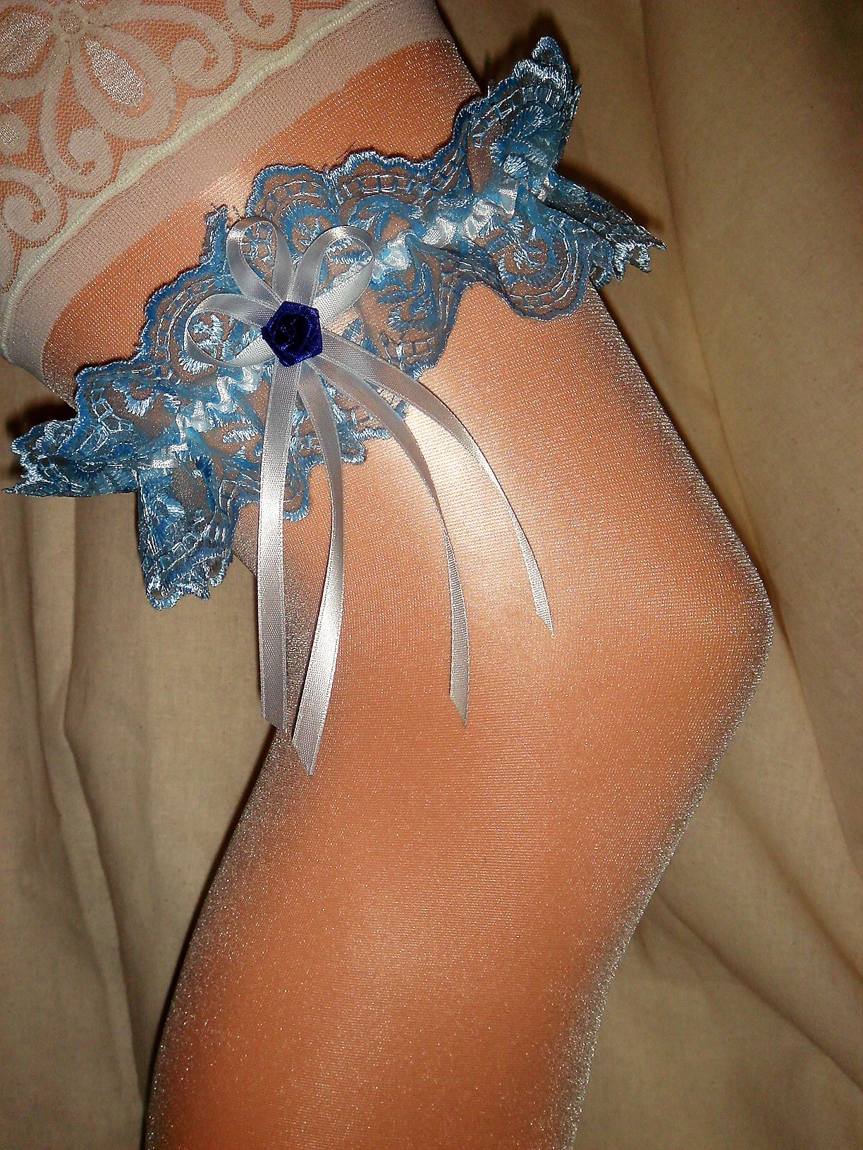 Strumpfband Hochzeit Fasching hellblau weiß SB043