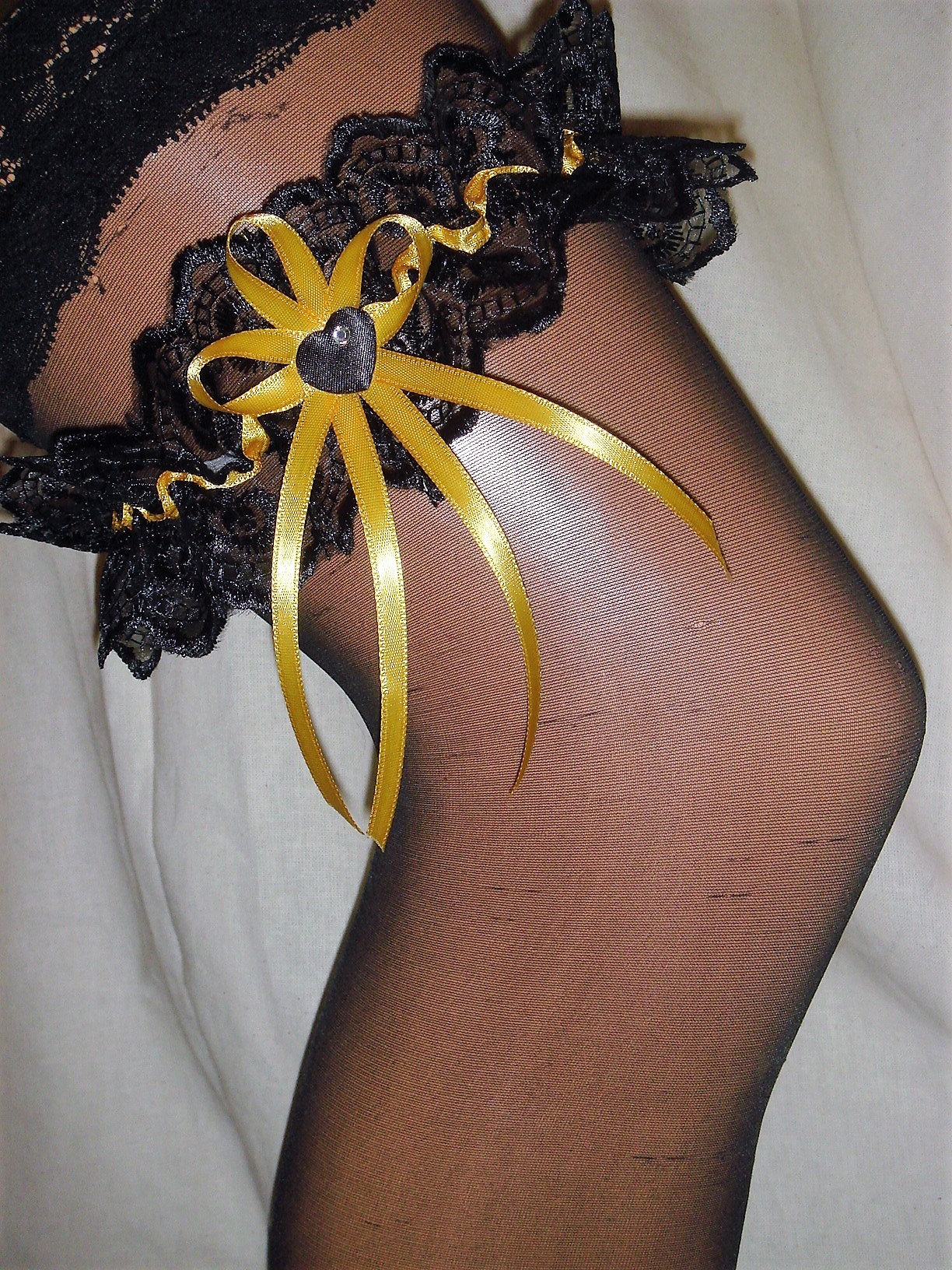 in liebevoller Hangarbeit von mir hergestelltes Strumpfband in schwarz-gelb