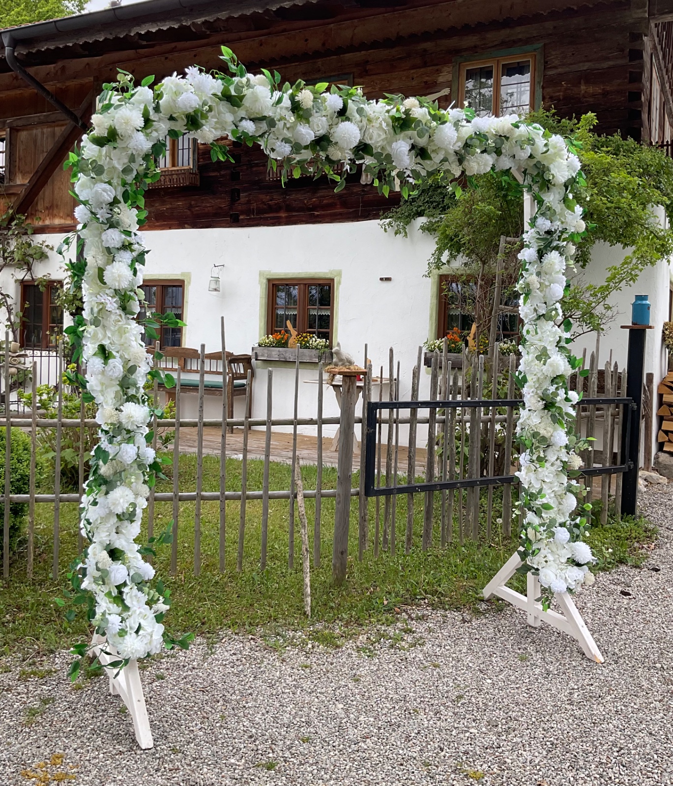 Eine nachhaltige Alternative zum Kauf könnte sein, einen Traubogen aus natürlichen Materialien wie Holz oder Birke zu mieten.