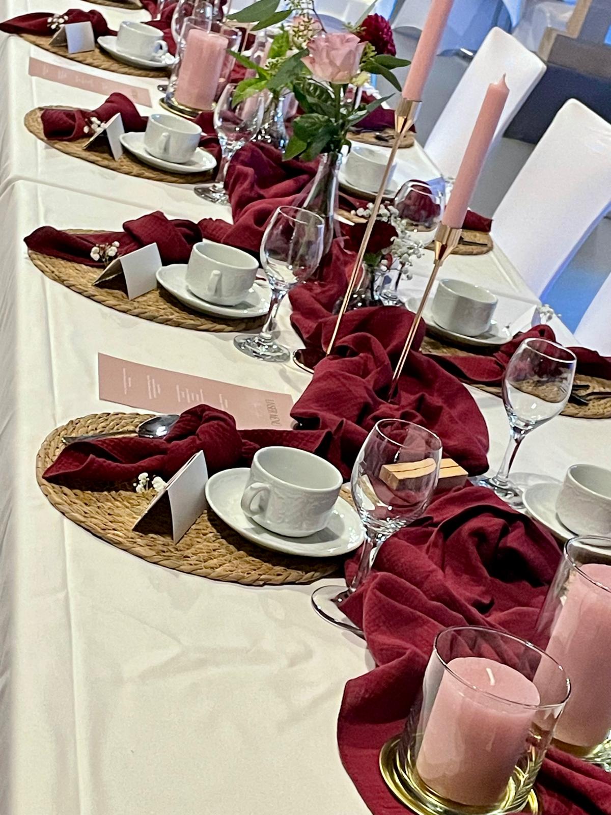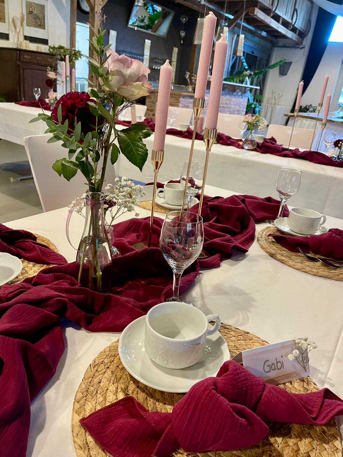 Vermietung von Musselin Stoff Tischläufer ca. 300 cm x 40 cm - Farbe bordeaux - beere / 5,50 €