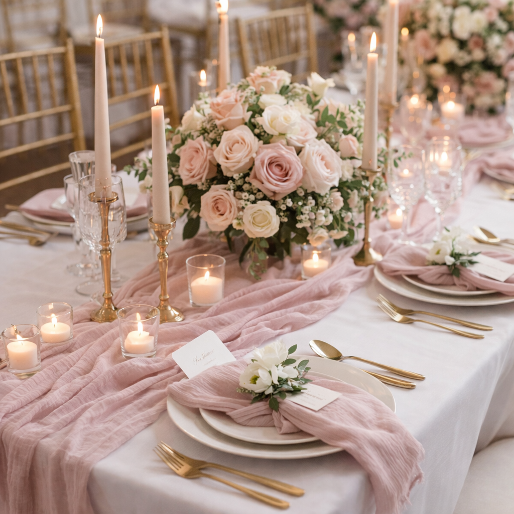 Ganz gleich, wie viel Zeit Ihr für die Vorbereitung habt oder welchen Stil Ihr Euch wünscht: Der Tischläufer passt sich Euch mühelos an. Schon mit ein paar liebevoll platzierten Elementen – Geschirr, Gläser, Besteck und einer einzelnen Kerze – entsteht ein schlichtes, edles Ambiente. Gleichzeitig bietet er Raum für opulente, ausgefallene oder detailverliebte Dekorationen. Besonders im Vintage- oder Boho-Stil entfaltet der Musselin seine ganze Wirkung. Eurer Kreativität sind dabei keinerlei Grenzen gesetzt.