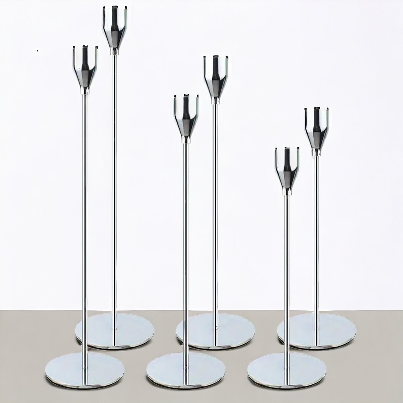 Vermietung von 3-tlg. Set Kerzenleuchter Hochzeit - 23 cm, 28 cm & 33 cm silber / 7 €