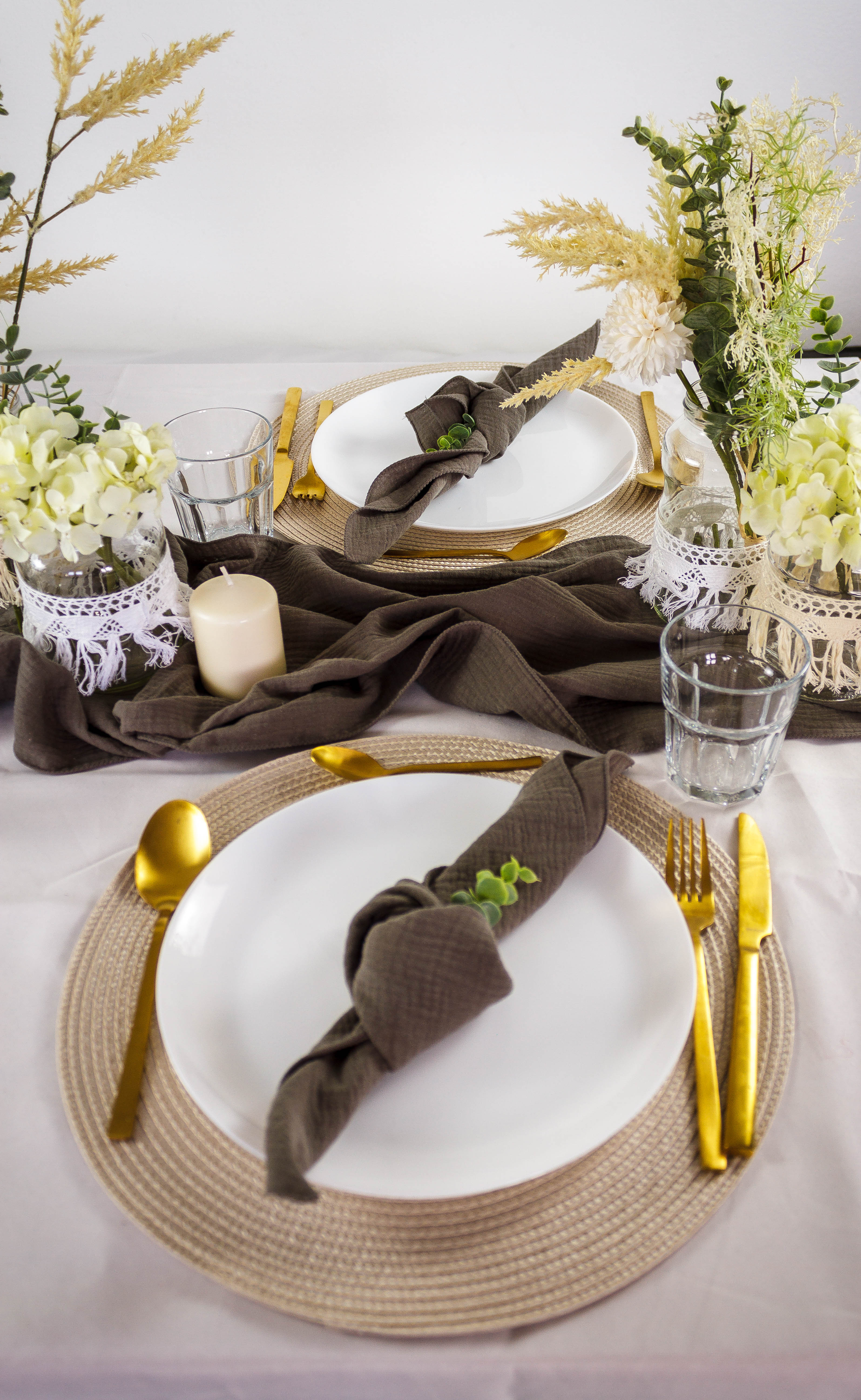 Ob für Eure Hochzeit, Euer Weihnachtsessen, Euer Firmenessen, Euer Geburtstagsessen, Eure Taufe, Euer romantisches Abendessen zu Zweit usw. - Diese stilvollen und zeitlosen Platzsets sind genau die richtige Wahl, um eine perfekte Basis für Euer Tisch-Arrangement zu schaffen.