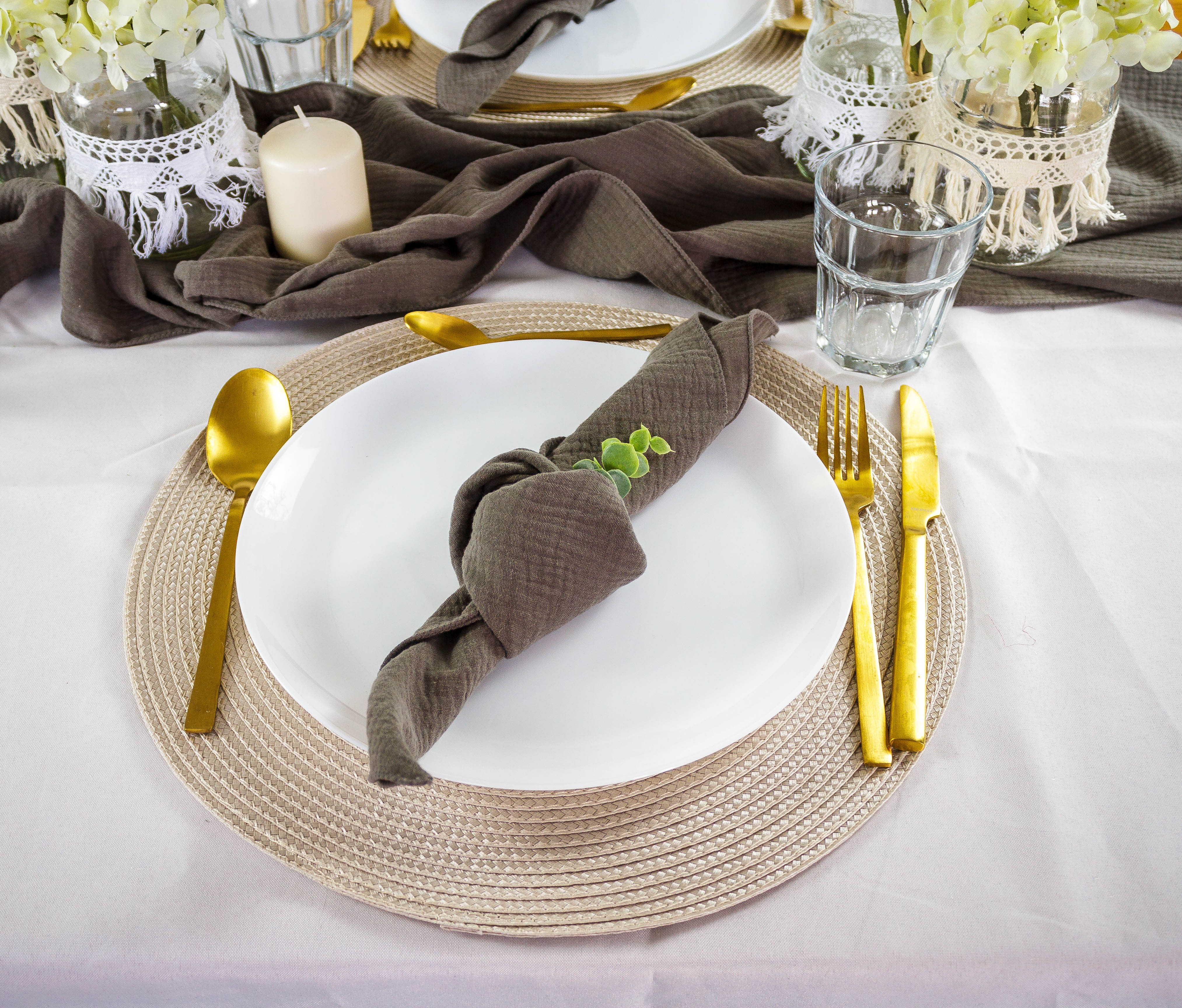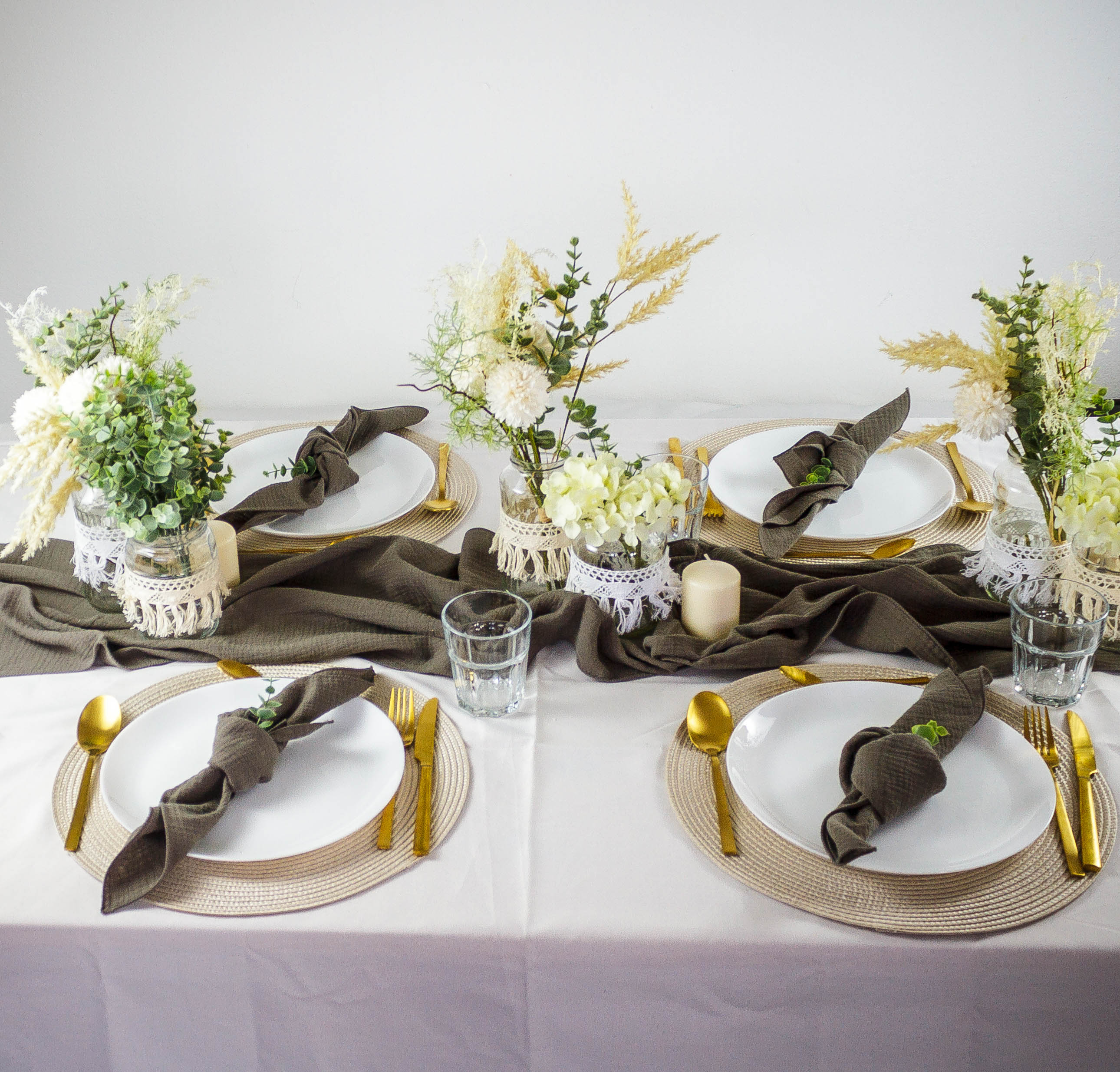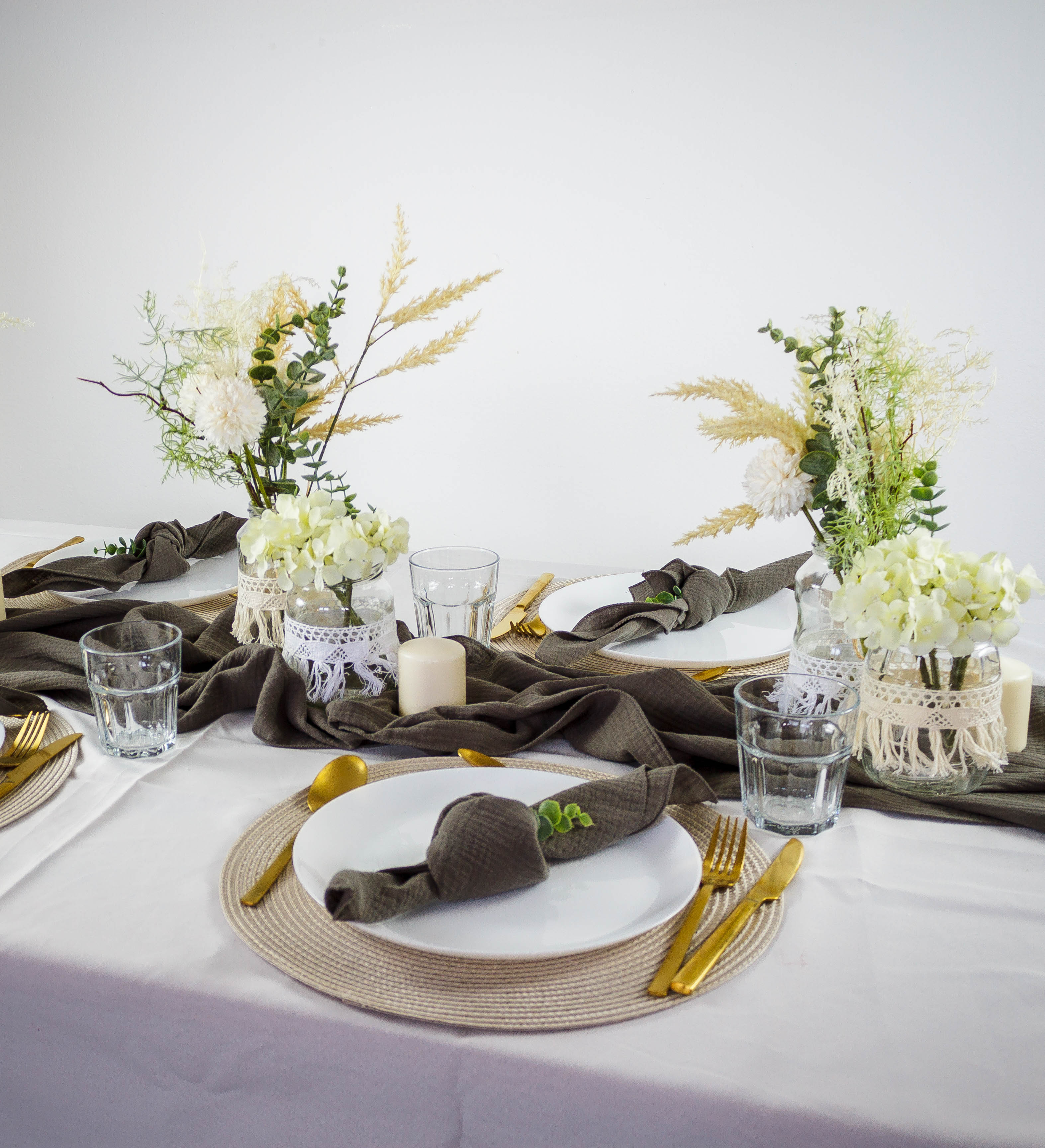 Ihr könnt je nach Anlass, Jahreszeit oder vorhandener Vorbereitungszeit, super einfach Eure Tischdekoration gestalten. Selbst wenn Ihr nichts weiter als das Geschirr, Besteck, Gläser und eine Kerze in der Mitte drapiert, erreicht Ihr schon ein schlichtes edles Ambiente. Aber genauso könnt Ihr eine sehr ausgefallene oder pompöse Dekoration kombinieren. Selbstverständlich harmonieren die Platzsets auch perfekt mit dem Vintage-/Boho-Stil. Eurer Kreativität sind keinerlei Grenzen gesetzt.