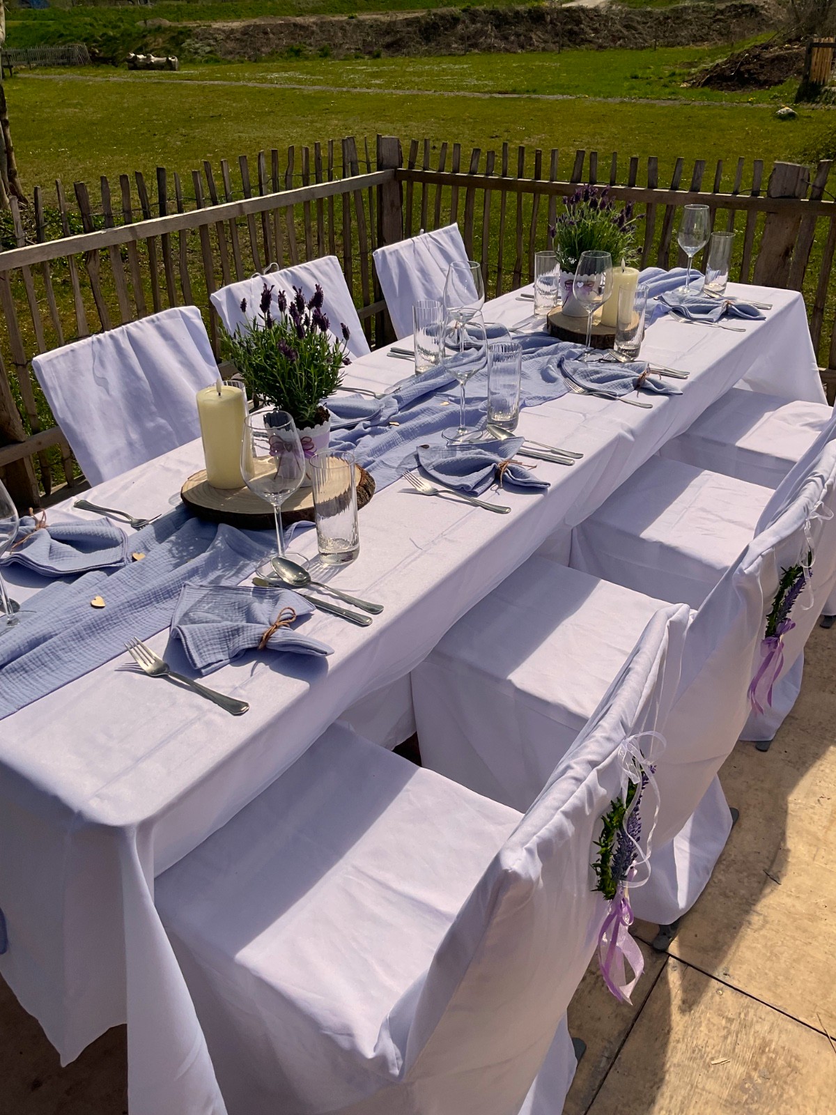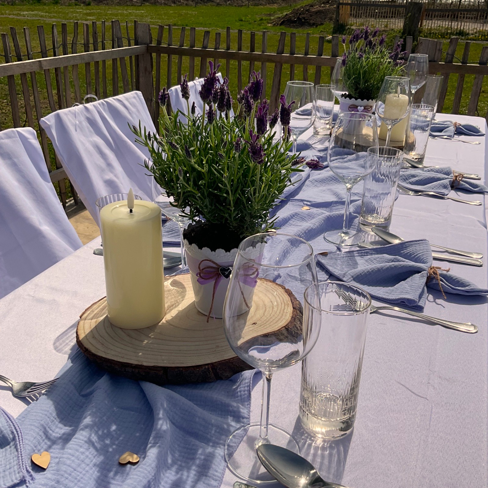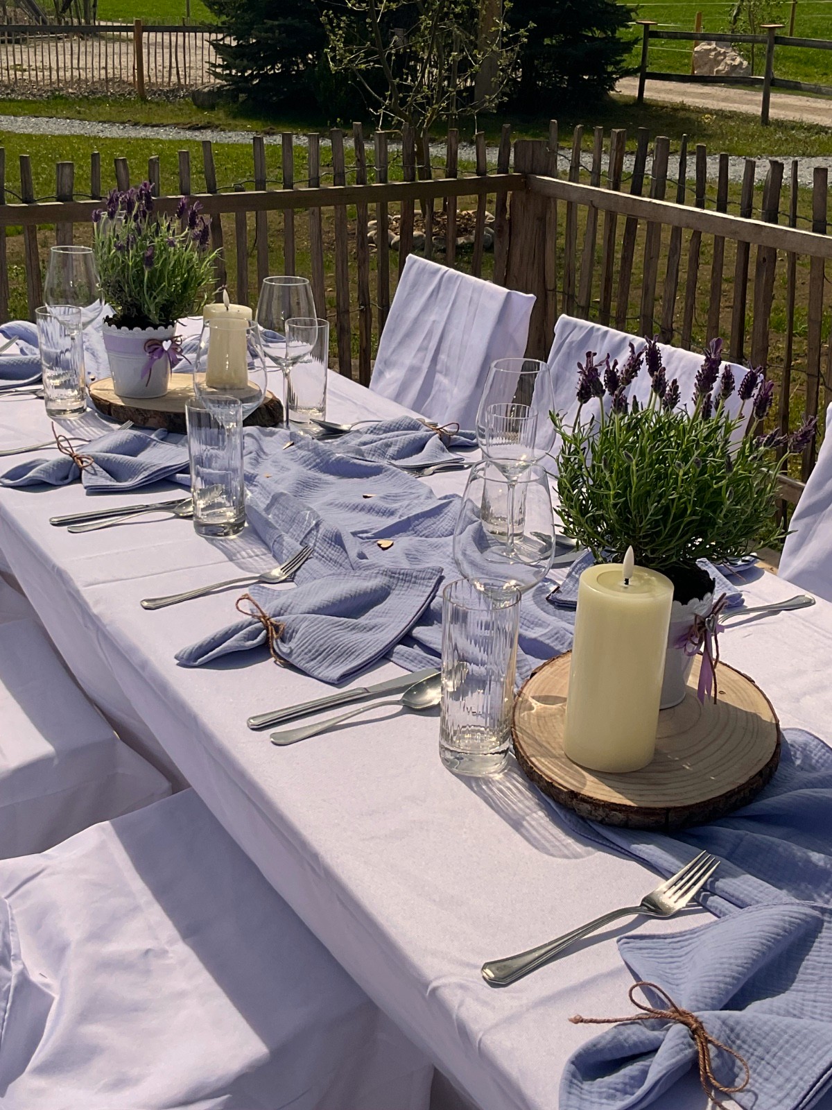 Vermietung von Musselin Stoff Servietten ca. 40 cm x 40 cm - Farbe flieder / 1,10 €