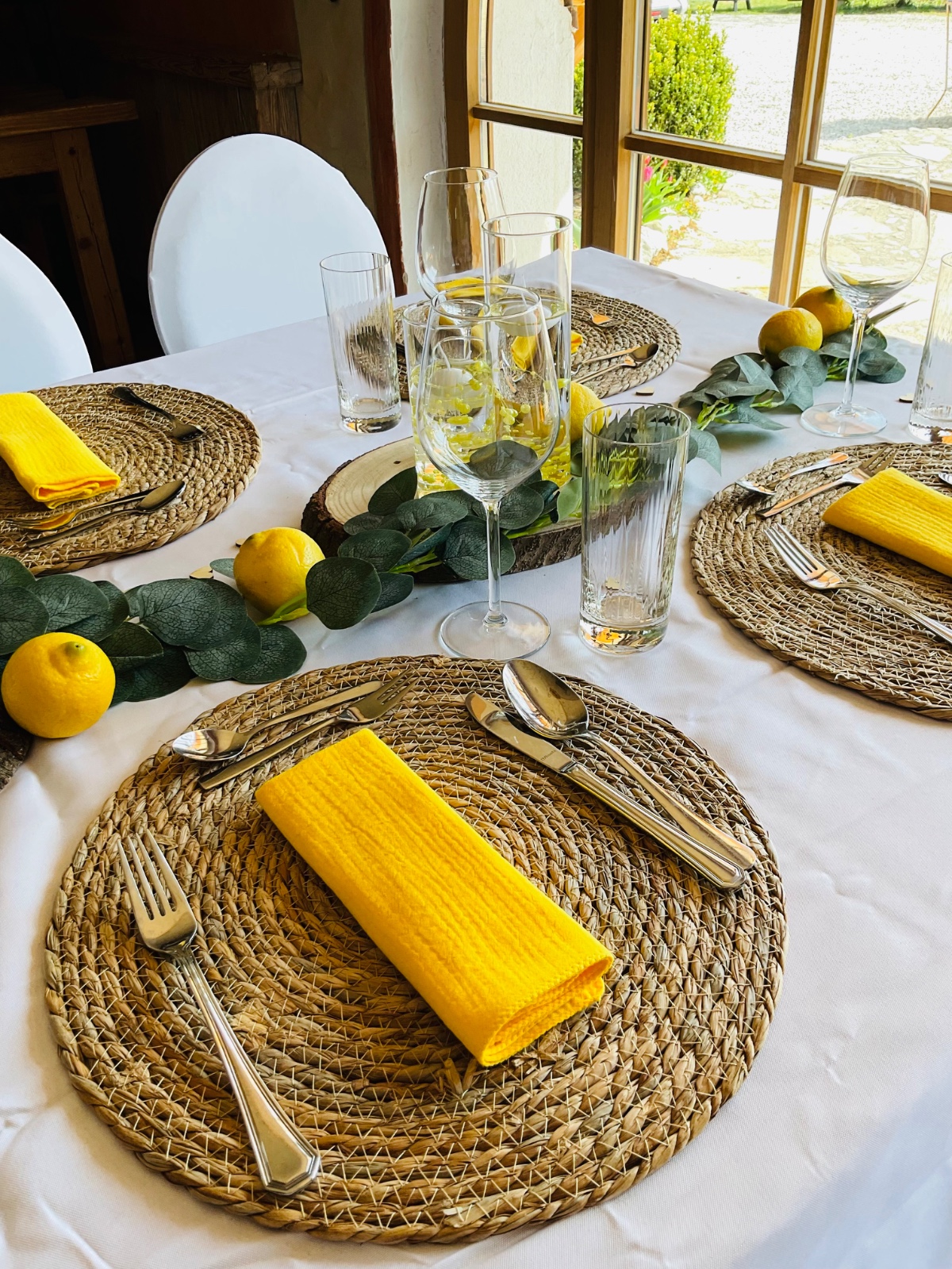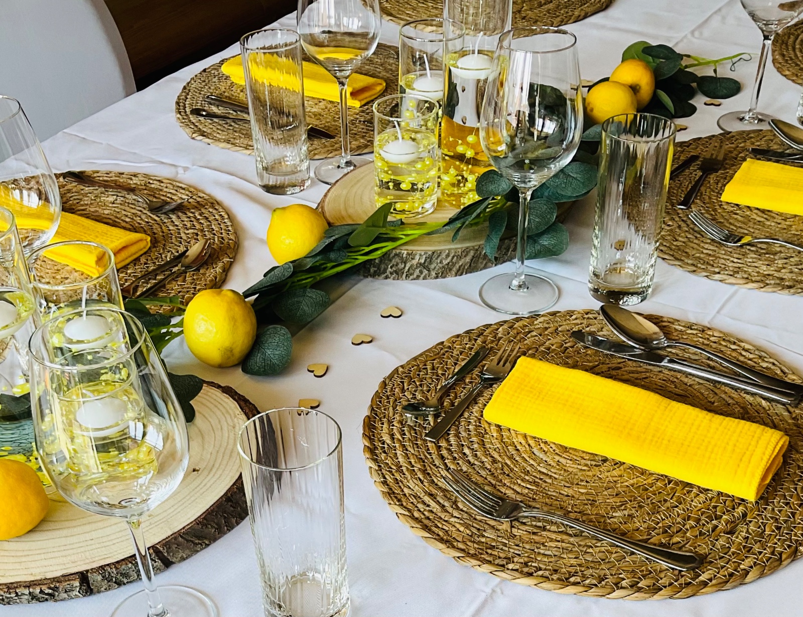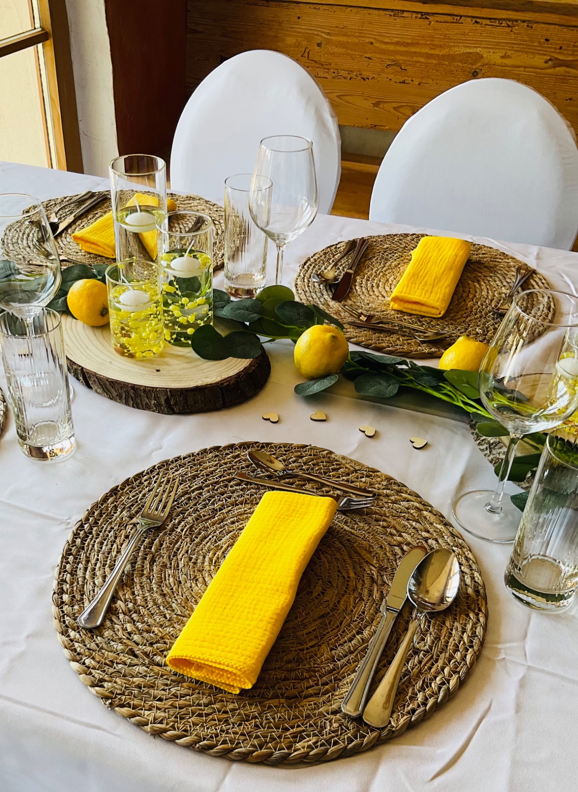 Vermietung von Musselin Stoff Servietten ca. 40 cm x 40 cm - Farbe gelb / 1,10 €