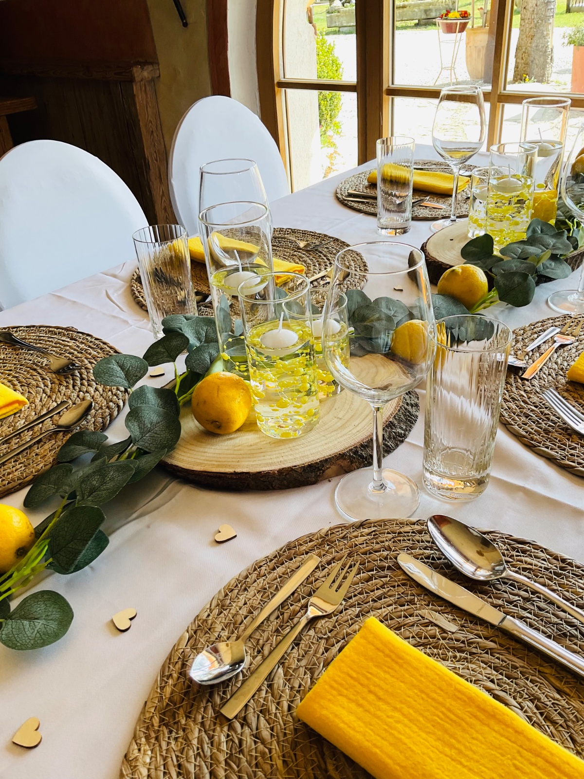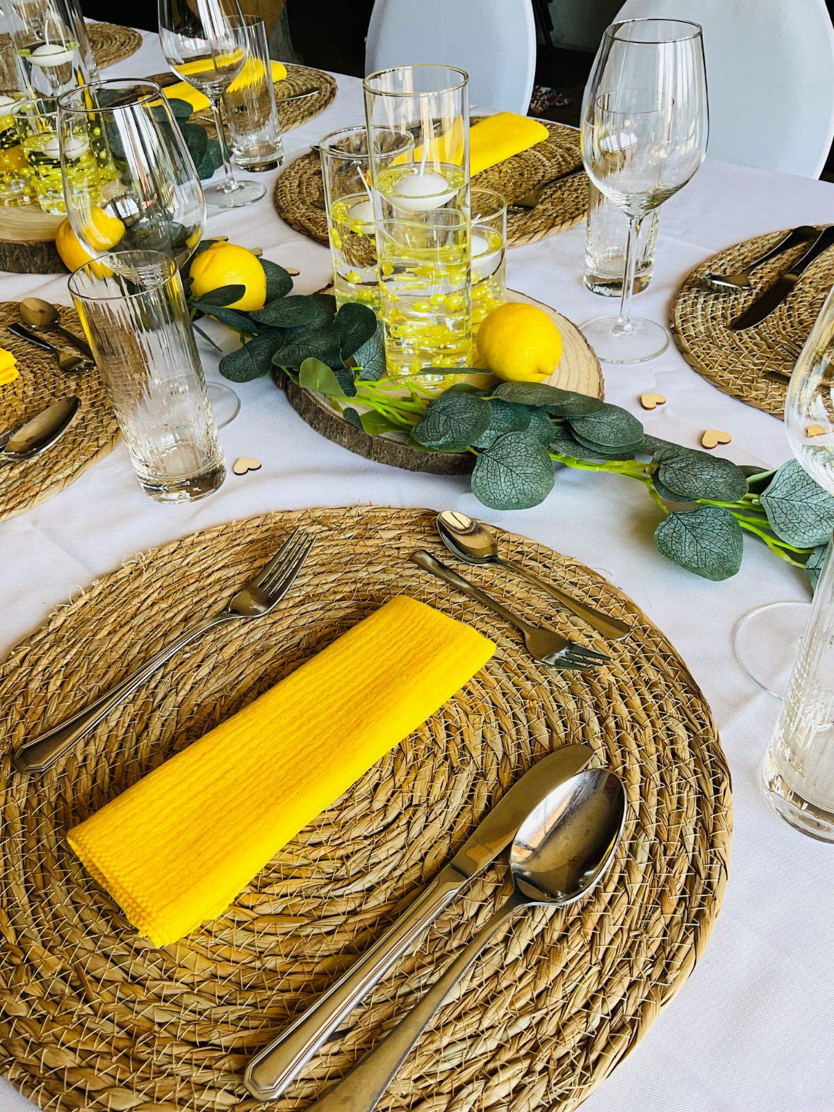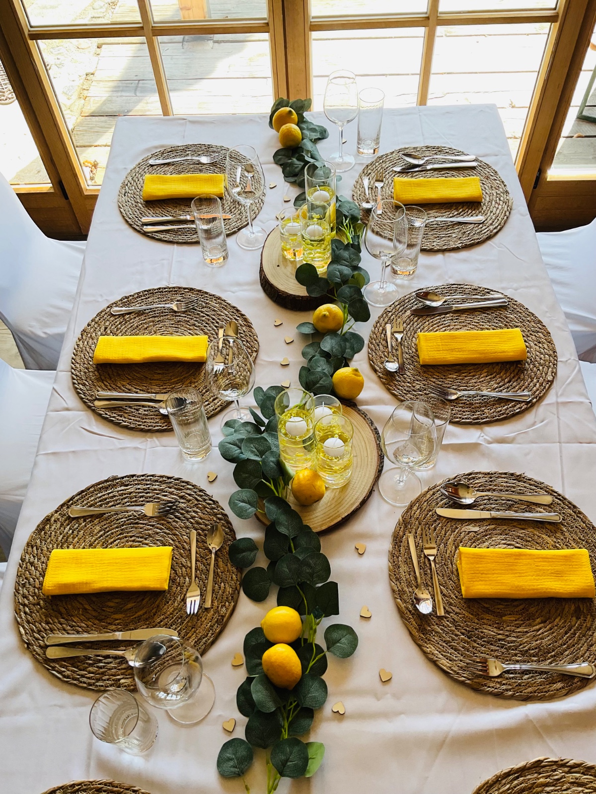 Vermietung von Musselin Stoff Servietten ca. 40 cm x 40 cm - Farbe gelb / 1,10 €