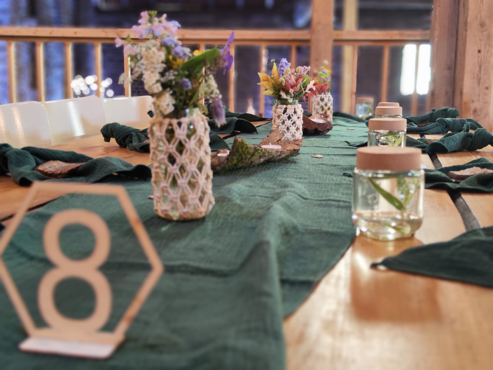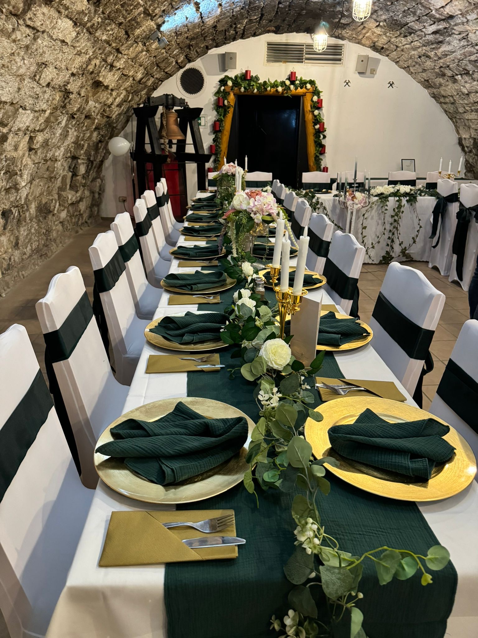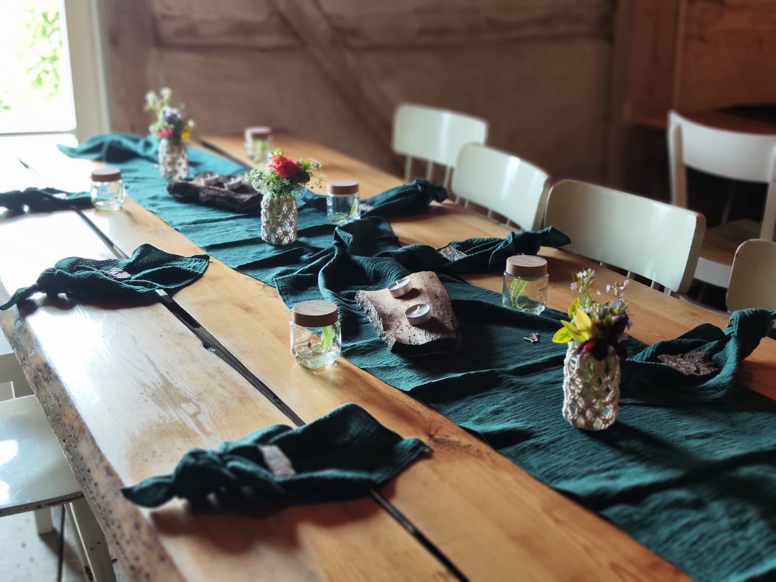 Mobile Preview: Vermietung von Musselin Stoff Tischläufer ca. 300 cm x 40 cm - Farbe dunkelgrün / 5,50 €