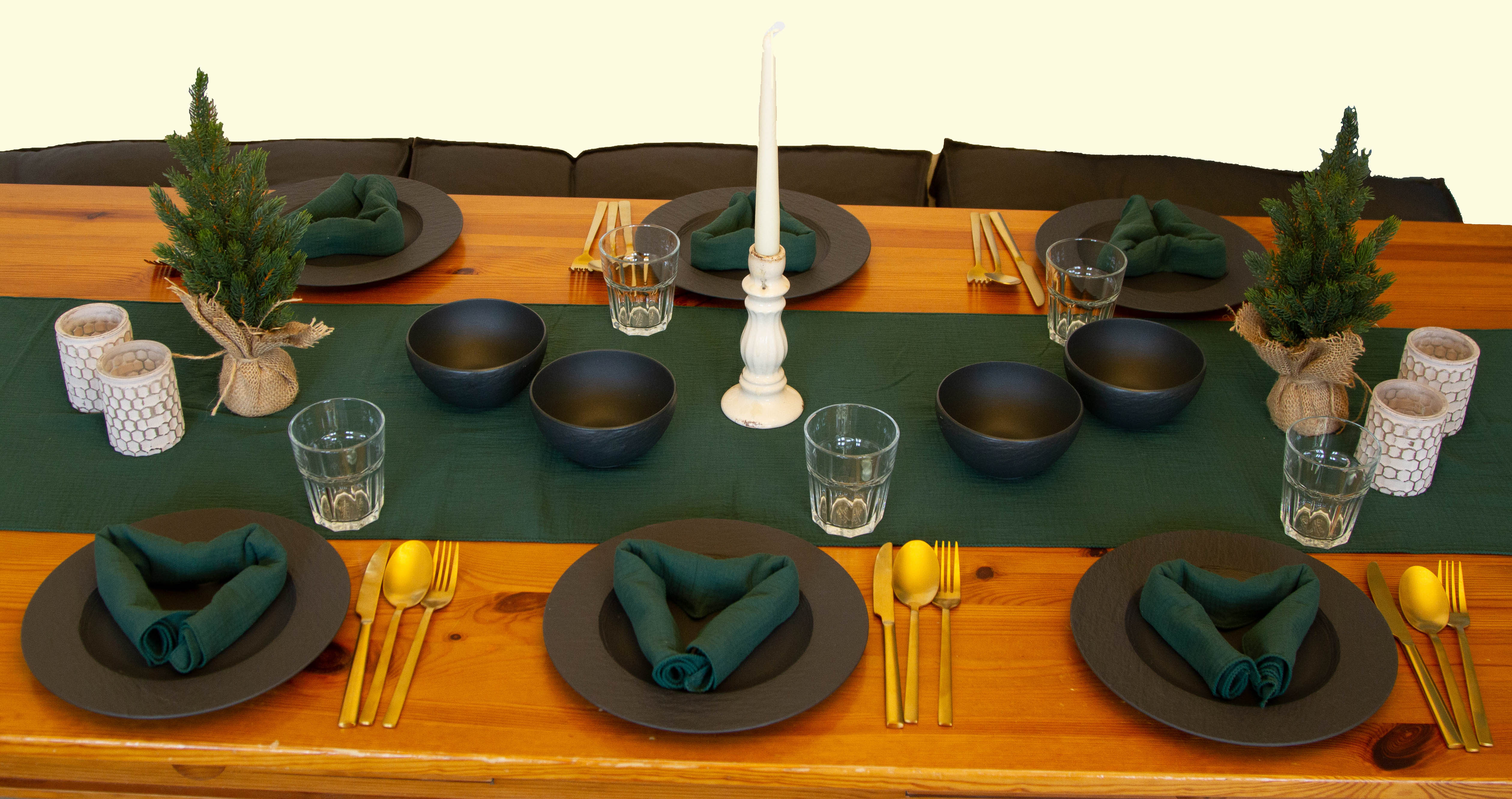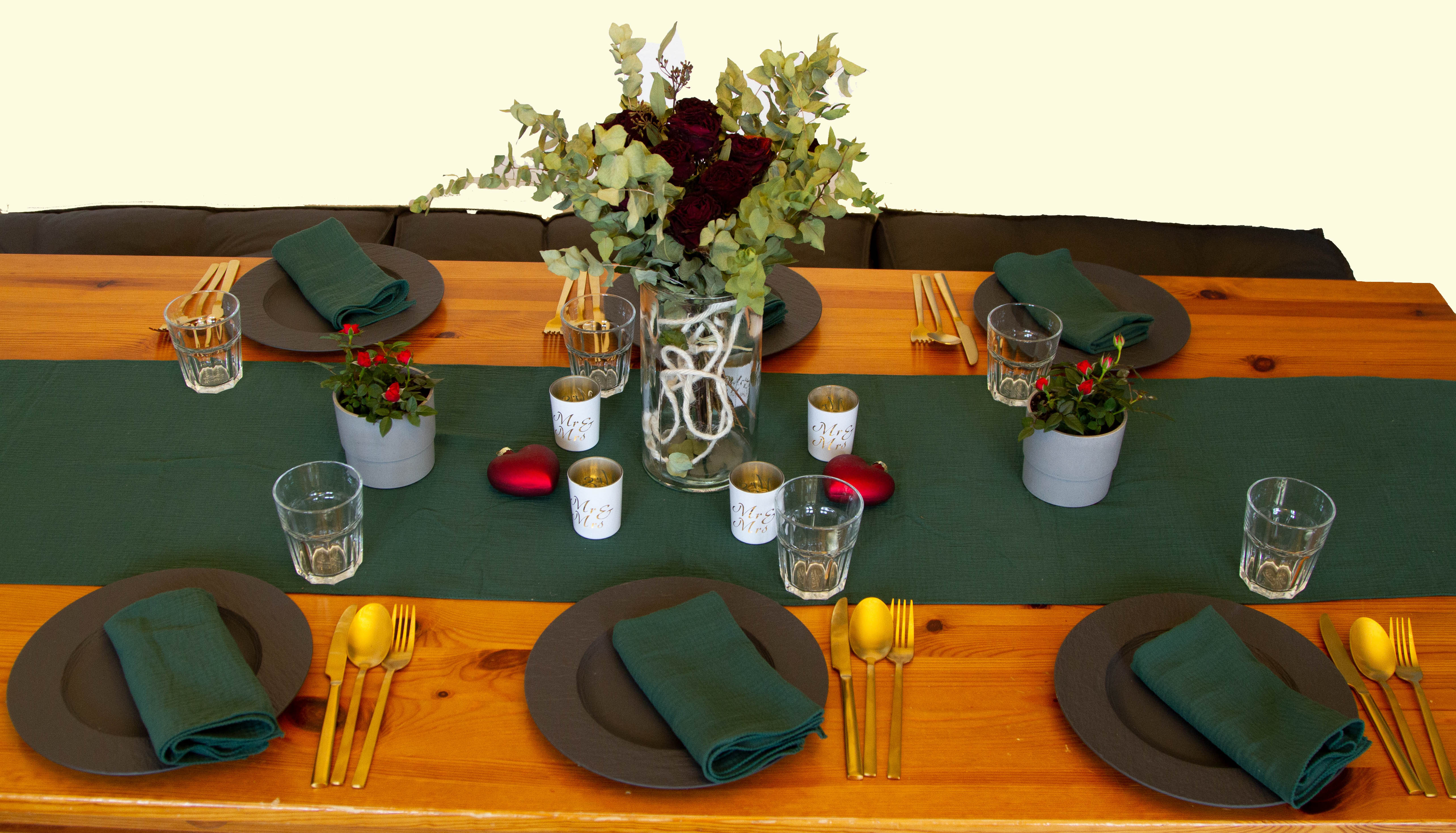 Musselin Tischläufer dunkelgrün