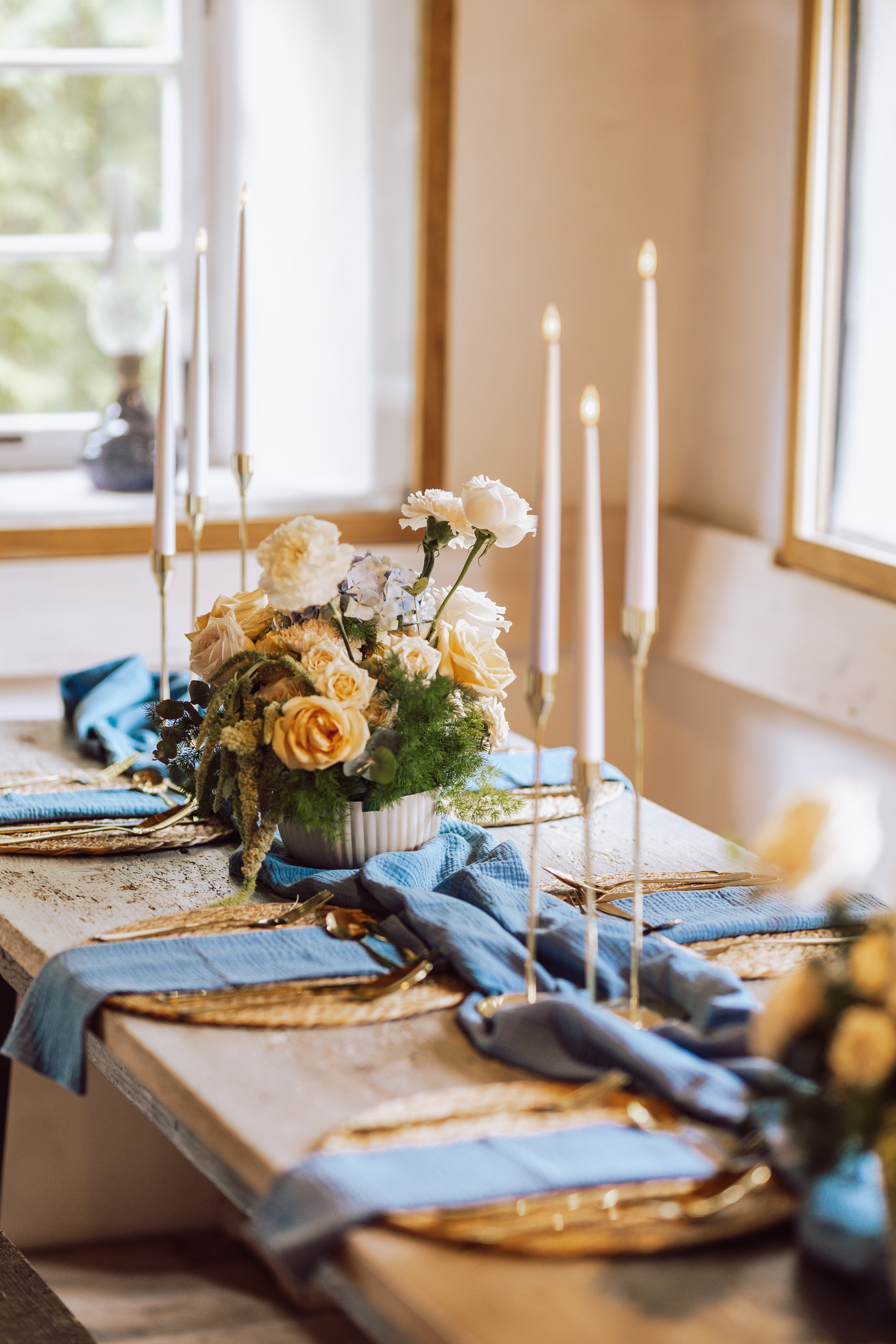 Preview: Vermietung von Musselin Stoff Tischläufer ca. 300 cm x 40 cm - Farbe indigo, taubenblau / 5,50 €