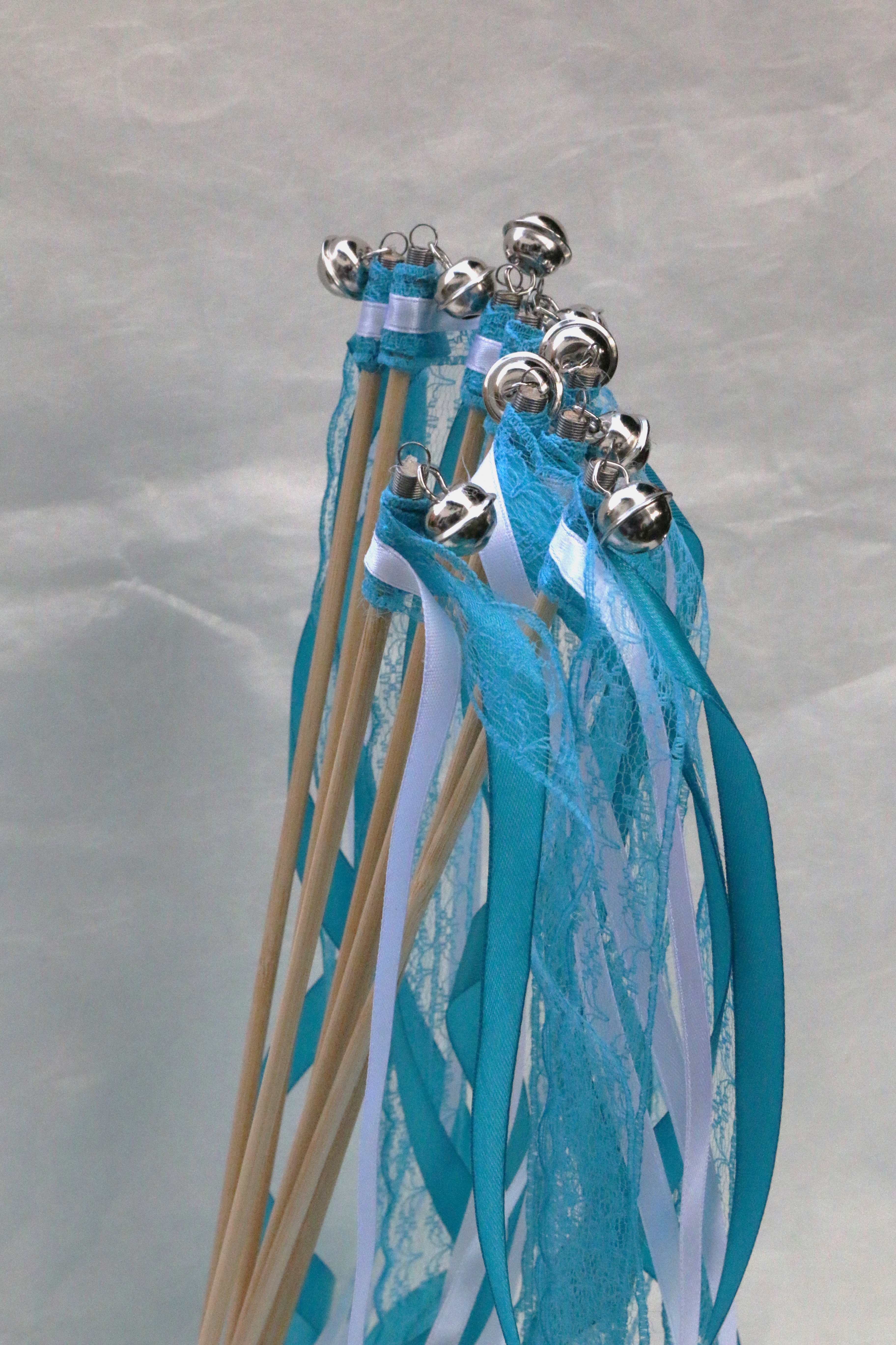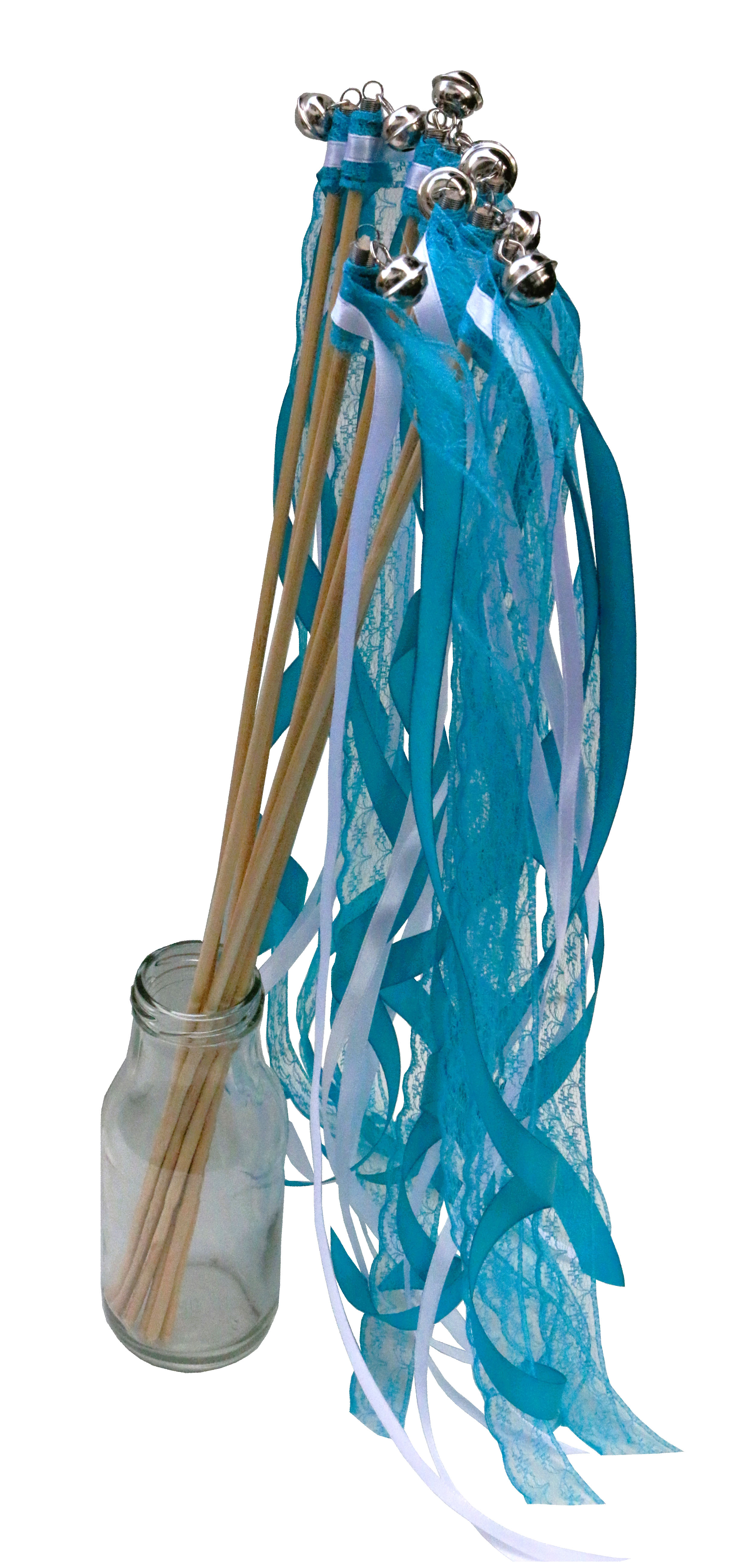 Wedding Wands mit Spitze türkis weiß - 10 Stück