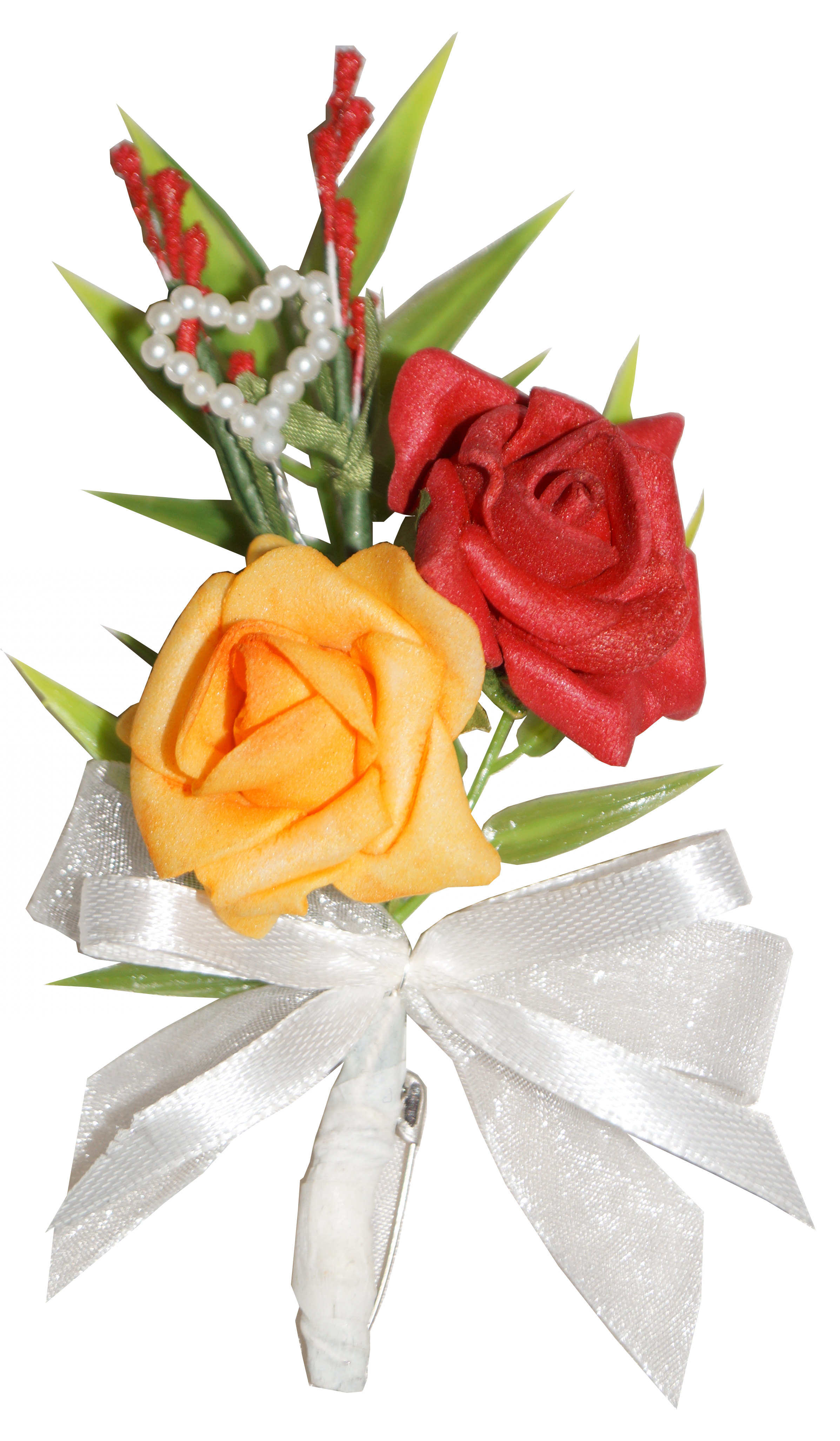 Die Anstecker für die Gäste sollten dem des Bräutigams zwar ähneln, aber der Anstecker des Bräutigams sollte sich abheben.