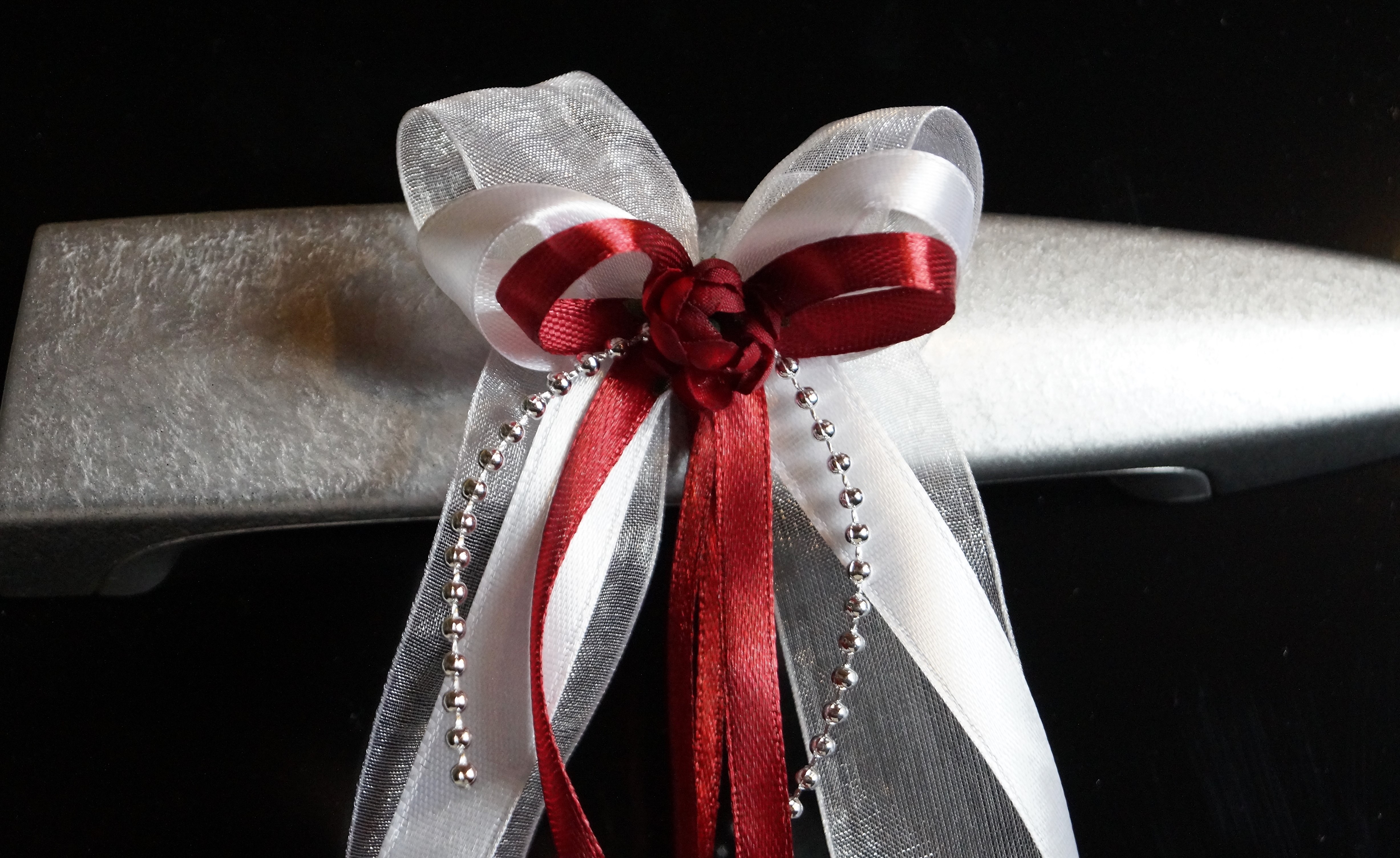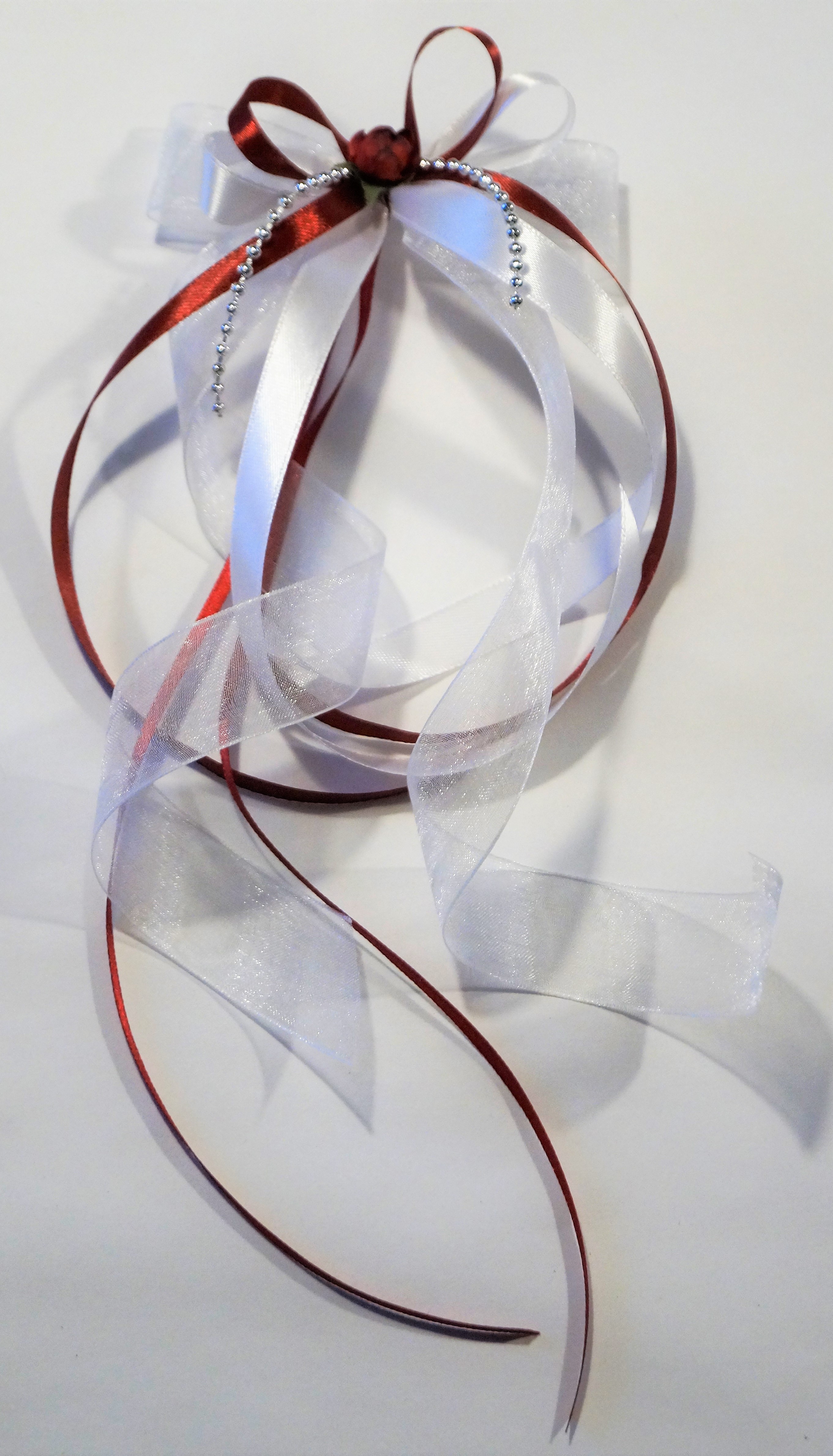 Preview: Antennenschleifen " Zoe " zur Hochzeit SCH0030 im 10er Set - weiß, bordeaux