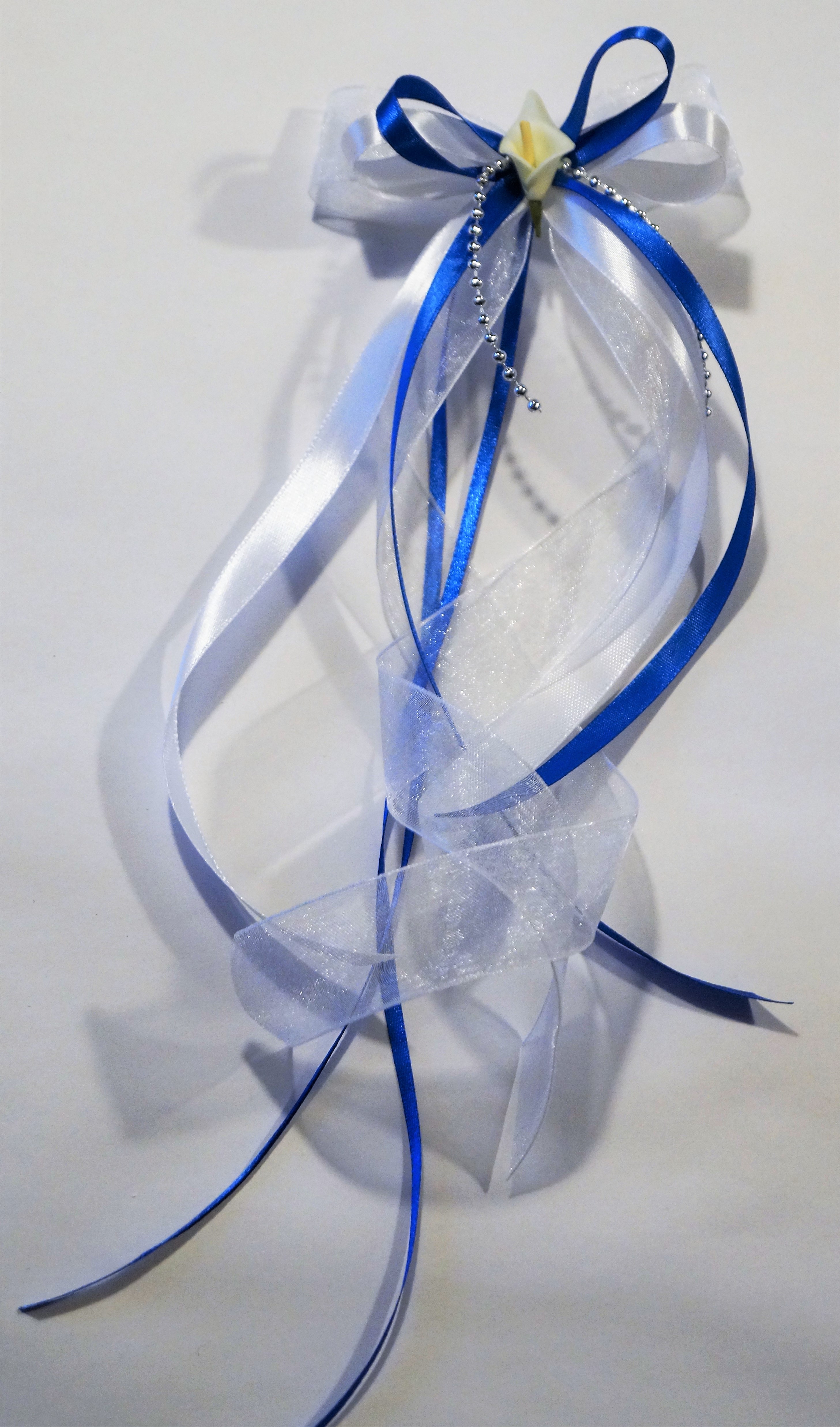 Preview: Antennenschleifen " Zoe " zur Hochzeit SCH0026 im 10er Set - weiß, blau