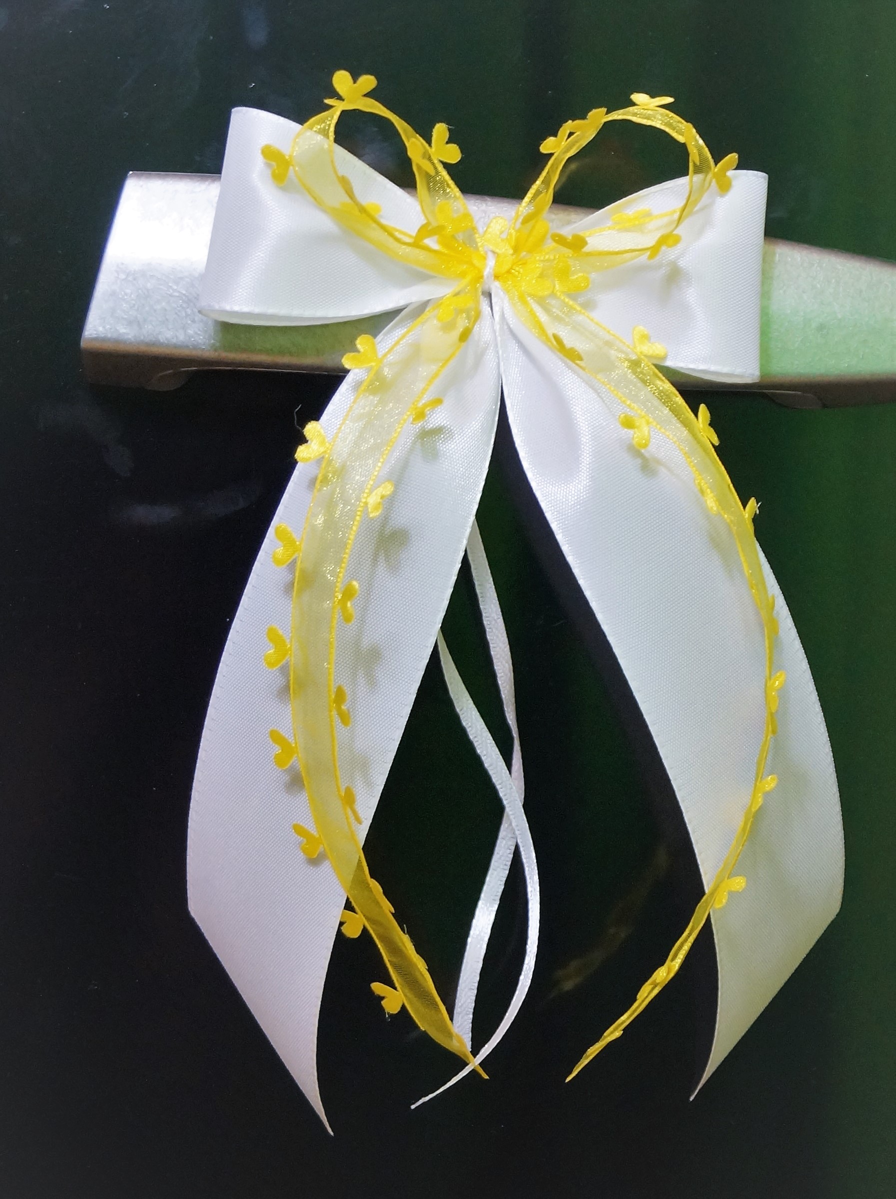 Mobile Preview: Antennenschleifen " Aurelia " zur Hochzeit im 10er Set SCH0100 - weiß, gelb