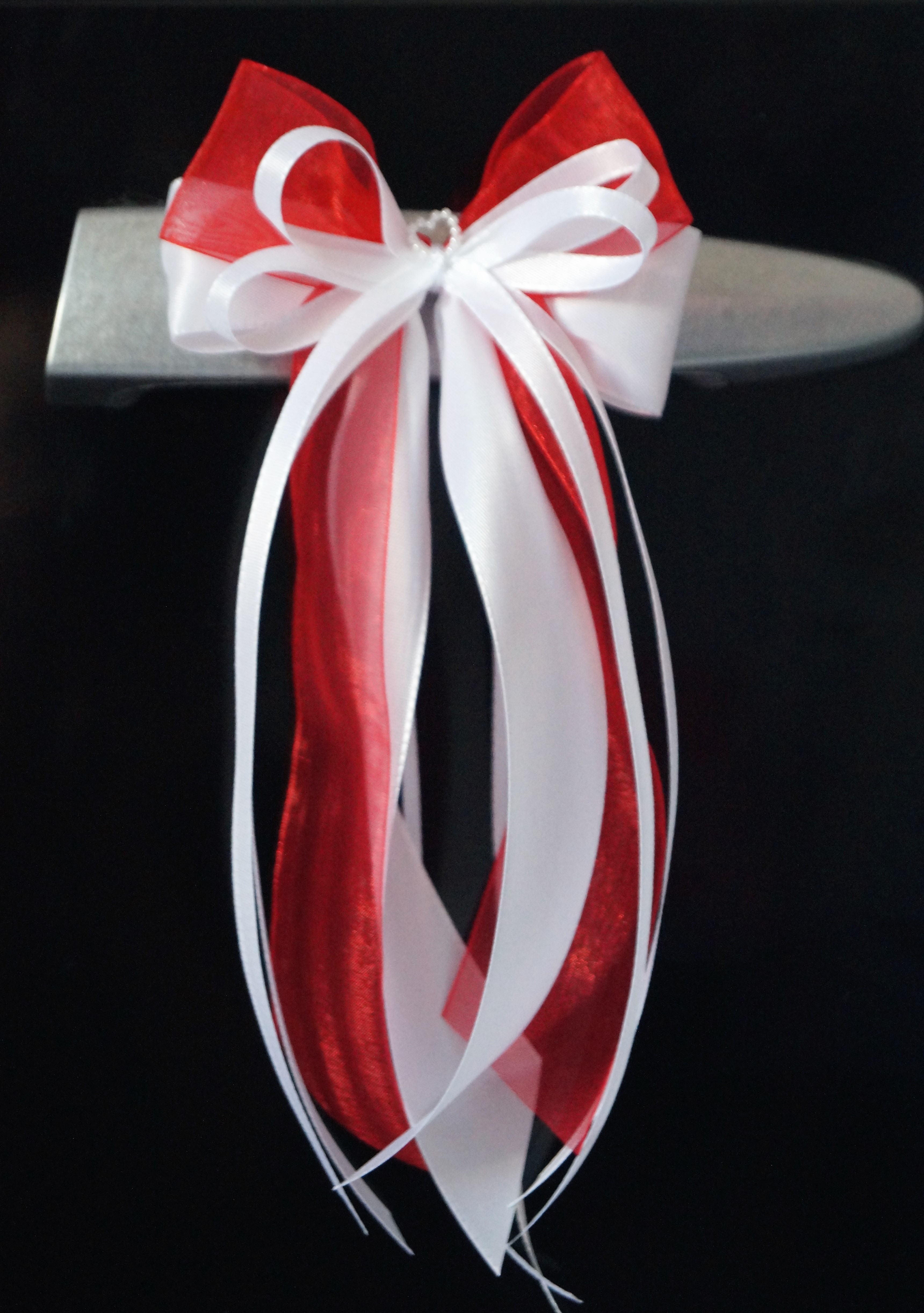 Preview: Antennenschleifen " Sarah " zur Hochzeit SCH0056 im 10er Set - weiß, rot