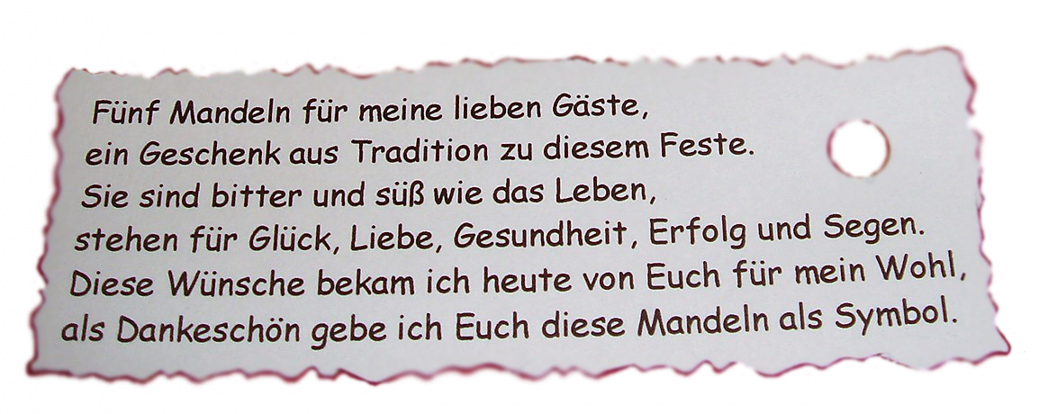 als Dankeschön geben wir Euch diese Mandeln als Symbol.
